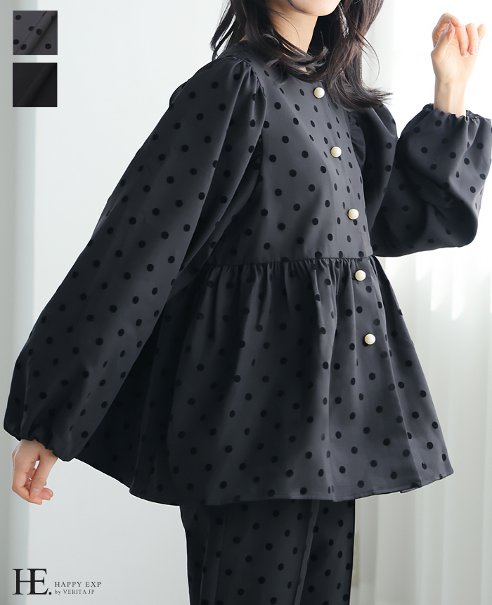 Happy急便 [NEW]女性らしいシルエットを約束 ペプラムジャケット 24940 2024年秋冬新作 ノーカラージャケット