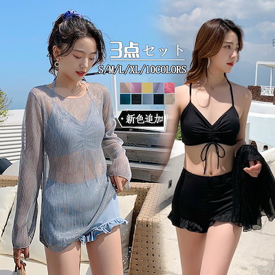 急速出荷 品質保証 3点セット 露出控えめ 水着 レディース 体型カバー ビキニ セパレート フィットネス タンキニ 大きいサイズ セットアップ 韓国 かわいい セクシー スポーツ おしゃれ ビ