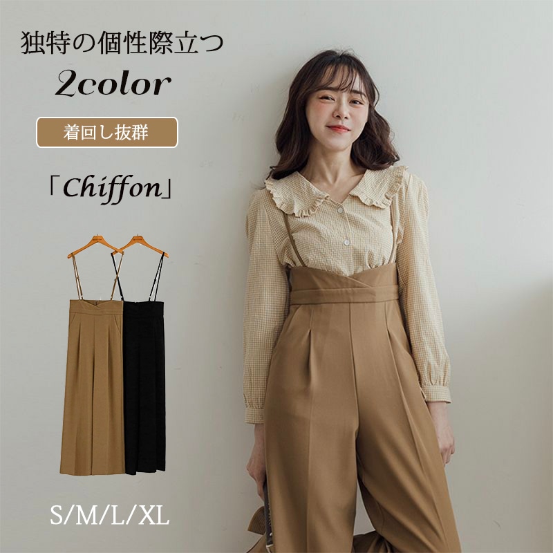 韓国のレトロな洋風スリムで用途の広いカジュアルなワイドレッグサスペンダーパンツルーズジャンプスーツ オールインワン