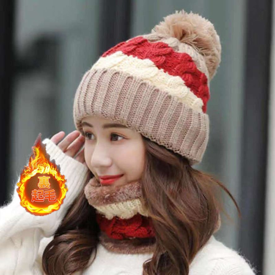 帽子 レディース ニット帽 裏起毛 秋冬 小顔 2点セット ネックウォーマーポンポン付き セットアップ アウトドア 編み目 あったか 防寒対策