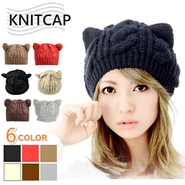ニット帽 レディース 猫耳 ニットキャップ おしゃれ 耳当て かわいい 暖かい 秋冬 毛糸 ハット あったか 編み込み 防寒 ニット キャップ 帽子 可愛い