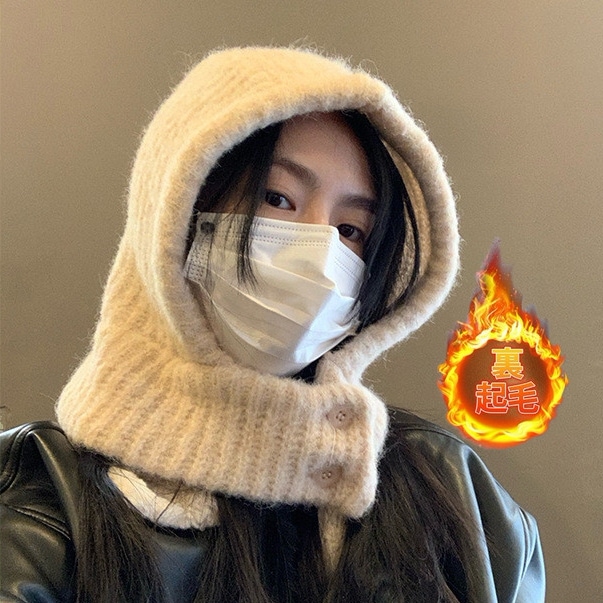秋冬新作帽子 韓国ファッション 毛糸ハット ニット帽子 スカーフ マフラー一体キャップがかわいい毛玉の耳当て 一体キャップ日系 厚手ウォーム小顔効果百掛け キュート ゆったり新作
