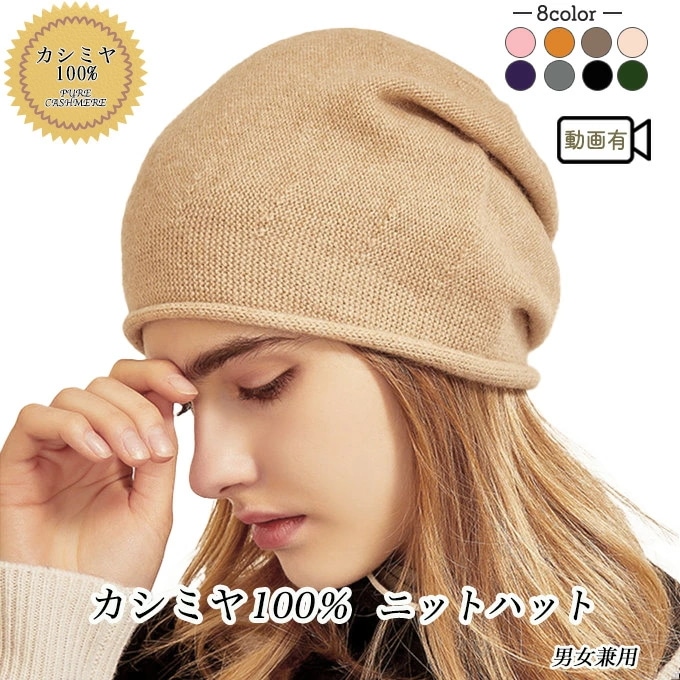 カシミヤ100% ニットハット ニット帽 冬 秋 薄手 軽い 軽量 防寒 内蒙古産 オルドス カシミヤ ユニセックス レディース プレゼント ギフト8カラー 敏感肌 黒 ブラック ブラウン グレー