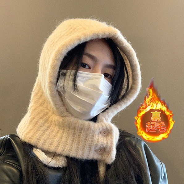 バラクラバ ニット ネックウォーマー レディース リブ編み ボタン付き ニット ユニセックス マフラー 帽子 暖かい フード付き スヌード ニット帽