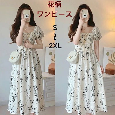 花柄ワンピース レディーススカート夏服スクエアネック かわいい ジャンパースカートトップス プリント 柄ワンピ