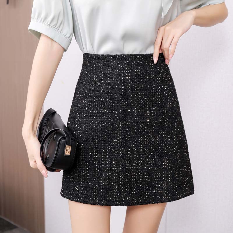 マキシスカート スパンコール 半身スカート 2024春秋 レディース ハイウエスト スカート アンチグレア ヒップスカート 韓国ファッション