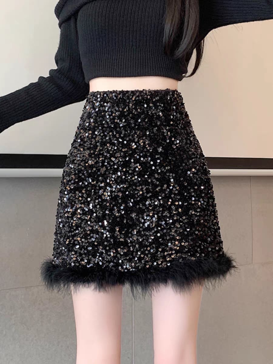 FREEL2色韓国スパンコールスカート ミニスカート