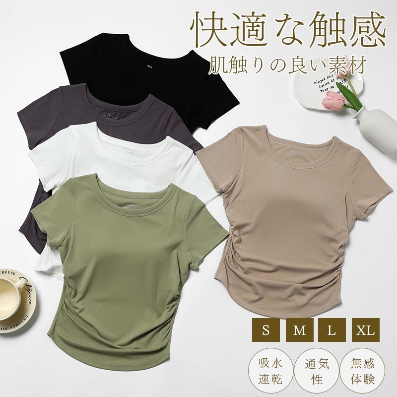 ヨガウェア トップス カップ付 半袖 ヨガTシャツ レディース ヨガトップス ピラティス ウェア 体型カバー吸汗速乾 通気性 薄手 伸縮性 かわいい ゆったり スポーツ