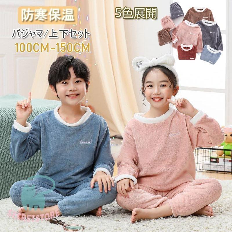 フランネルパジャマ キッズ 子供 パジャマ 2点セット 女の子 男の子 秋冬 厚手 暖かい 長袖 モコモコ ルームウェア 部屋着 セットアップ 可愛い 防寒着 秋冬