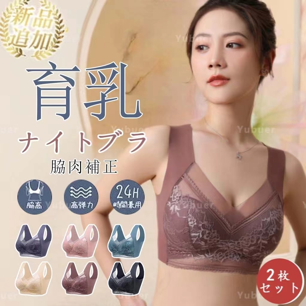 2枚セット ナイトブラ 24時間育乳ブラ ブラジャー 昼夜兼用 金属不使用 薄手 通気性 ナイトブラ