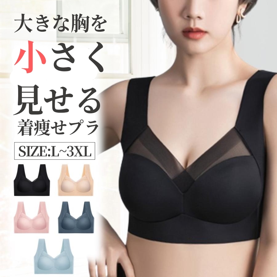胸を小さく見せるブラ ノンワイヤー 大きいサイズ ブラジャー 胸が小さく見えるブラ 胸つぶし 30代 40代 50代 シームレス ナイトブラ