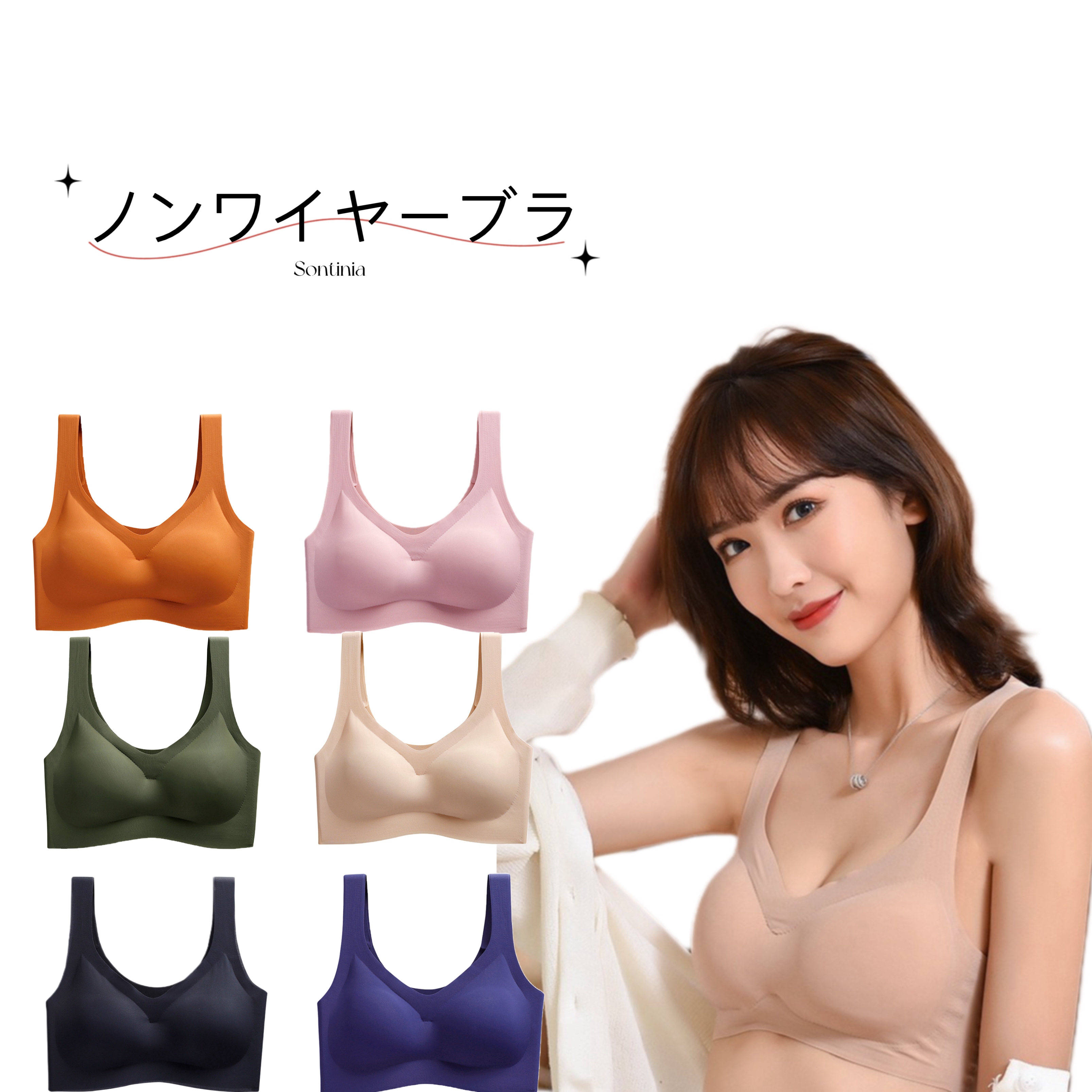 Sontinia 丸盛り ブラジャー もちもち 立体カップ ブラ レディース 立体カップ 透けにくい ノンワイヤー 脇高 シンプル 旅行 らくちん 脇肉 響きにくい 下着 インナー カップ谷間 盛れるブラ