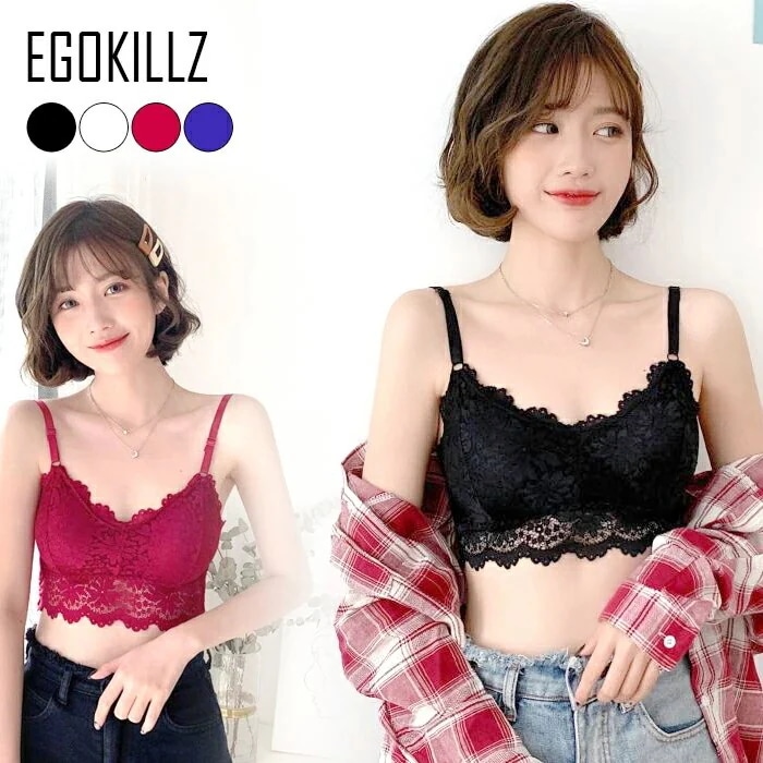 EGOKILLZ カップ付き Vライン レース ブラトップ 総レース キャミソール カップ付きキャミソール ナイトブラ ブラック ホワイト 黒 白 赤 青 インナー レディース ノンワイヤー インナー