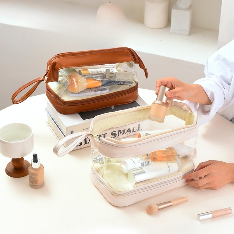 化粧ポーチ 2個セット 多機能 小物入れ おしゃれ 可愛い シンプルメイクポーチ コスメポーチ コンパクト ミニ レザー ギフト プレゼント クリスマス