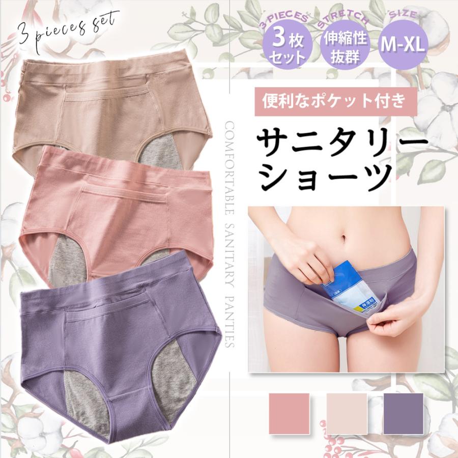 サニタリーショーツ3セット 綿 生理用ショーツ 生理用下着 生理用パンツ ショーツ 通気性 漏れ防止 昼夜用 三枚セット サニタリーショーツ