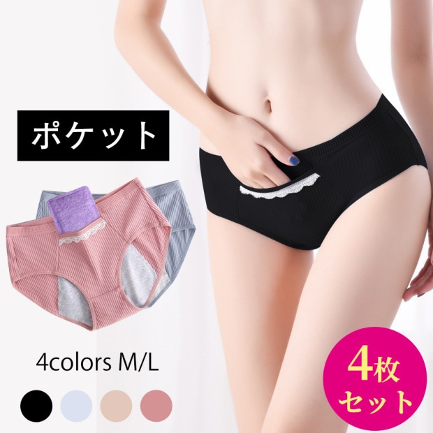 サニタリーショーツ レディース 4枚セット 下着 ポケット付き パンツ 生理用ショーツ 生理用パンツ サニタリーパンツ 通気性 漏れ防止 子宮温活