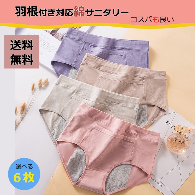 4枚セット サニタリーショーツ 綿ショーツ 敏感肌用可 ポケット付き カラー一つずつ レディース 下着 パンツ 生理用ショーツ サニタリーショーツ