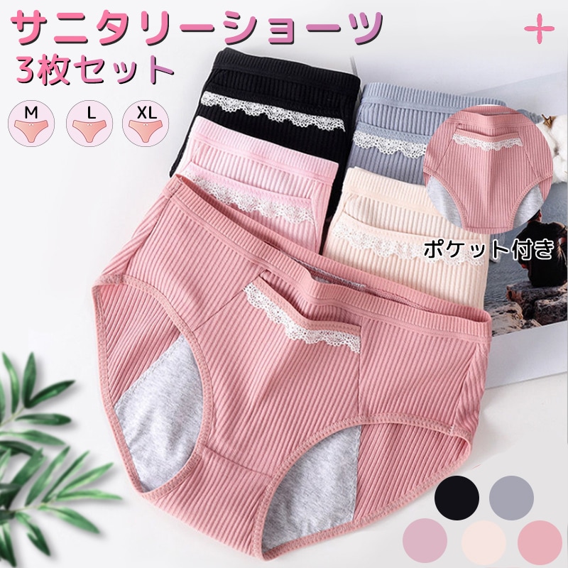 サニタリーショーツ 3枚セット ポケット付き レディース パンツ 防水 生理用ショーツ 深め サニタリーショーツ