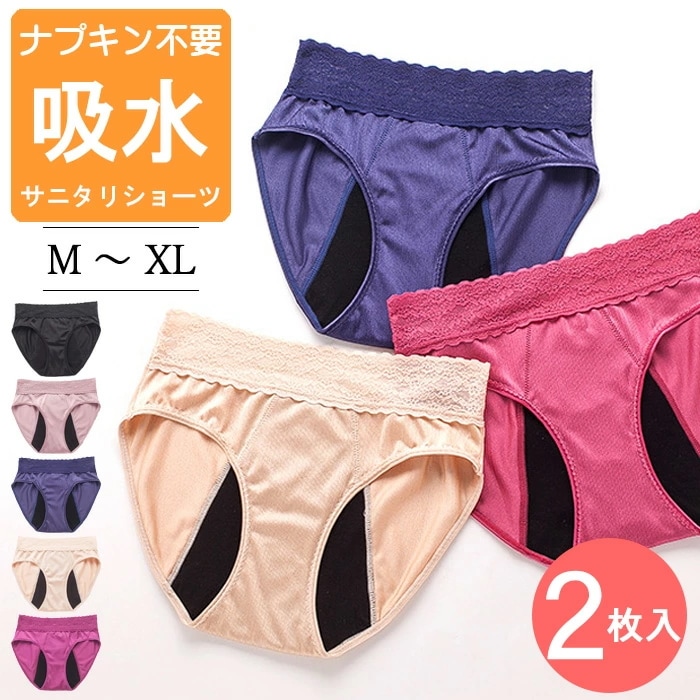 2枚セット 吸水サニタリーショーツ M L XL 吸水ショーツ 4層構造 漏れない 生理用ショーツ 多い日 吸水 夜用 失禁ショーツ 尿もれ