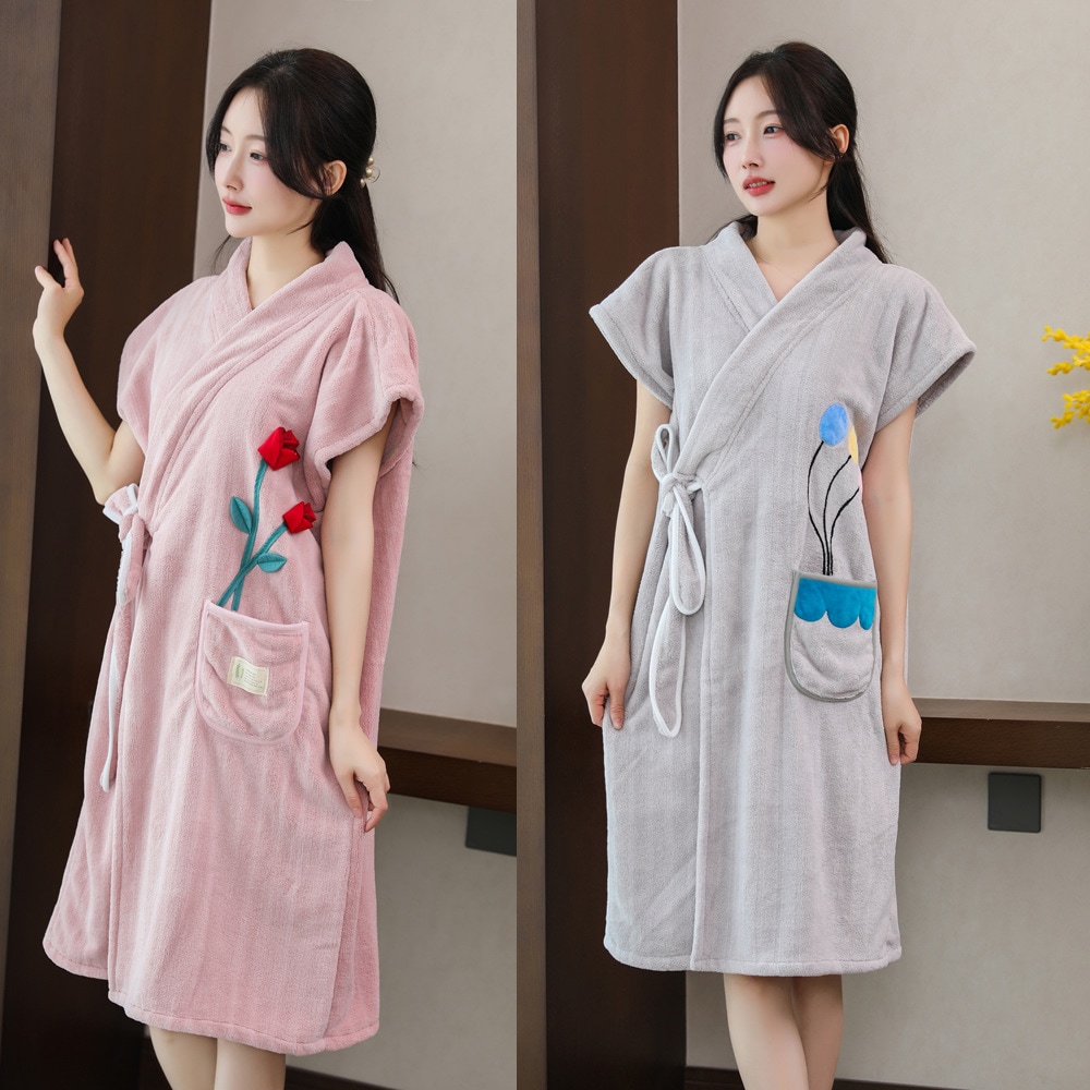 新作 バスローブ 女性用 バスタオル ウェアラブル ラップ バスローブ 大人用 吸収性 バスローブ バスローブ