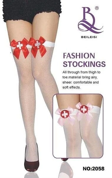 アンナムー コスプレ 衣装 仮装 ナース ストッキング 白 赤リボンガーターベルト ガーターストッキング c283c ストッキング