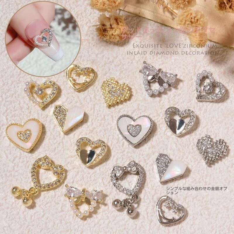 愛のネイルアクセサリー新作爪飾り真珠蝶結びハート型ジルコン網赤ドリル デコパーツ