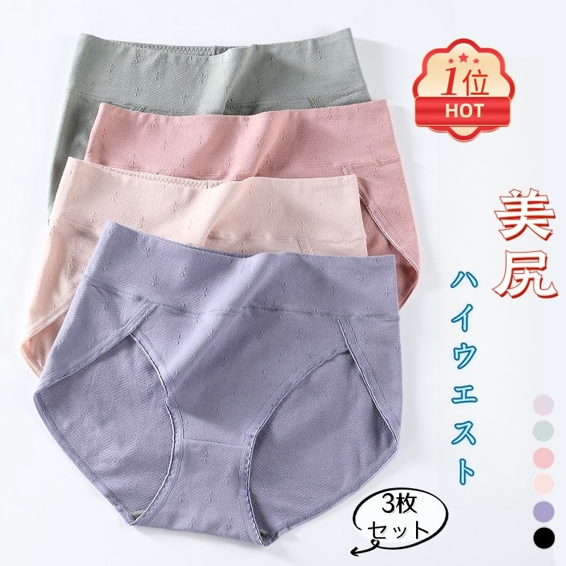3点セット 無料 ハイウエスト 綿 ショーツ セット美尻 ヒップアップ 産後 子宮温活 大きいサイズ パンツ オーガニック 温活 M-4L レディース 深ばき下着 サニタリーショーツ