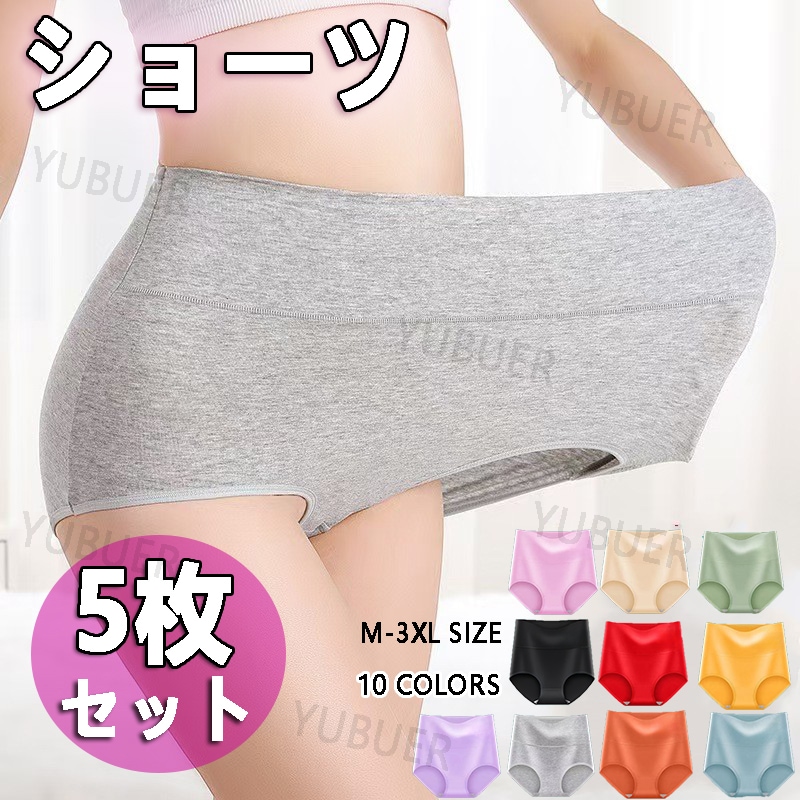 ハイウエスト ショーツ セット 綿 コットン 5枚組 大きいサイズ パンツ オーガニック 温活 M-4L レディース 深ばき下着 サニタリーショーツ お腹すっぽり