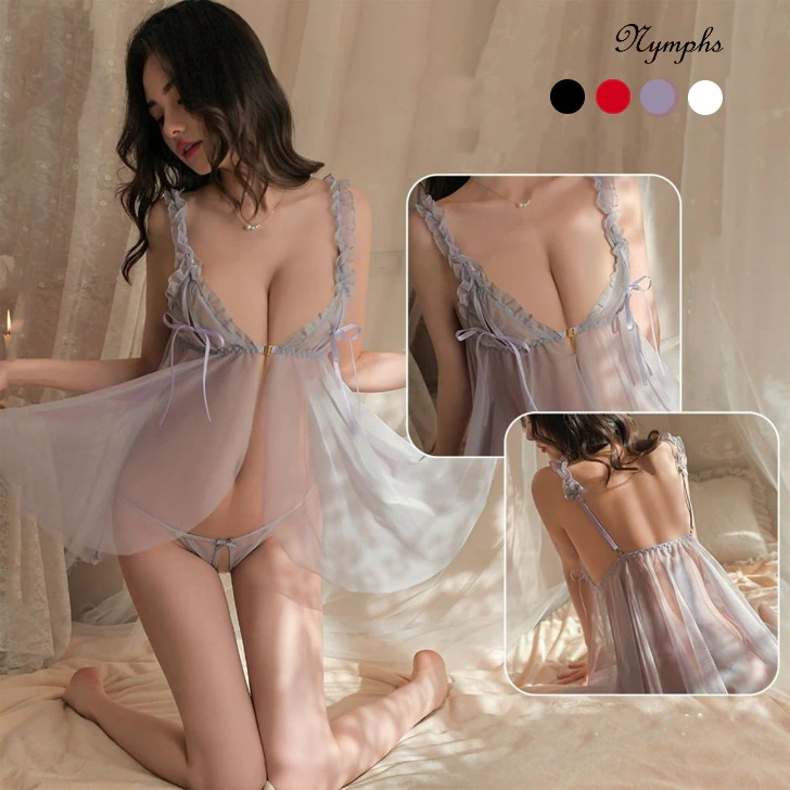 セクシーランジェリー ベビードール 穴あき Tバック 黒 透け透け ブラック 紫 ホワイト 白 赤 レッド グレー 灰色 Gストッキング 勝負下着 30代 40代 50代 Lサイズ