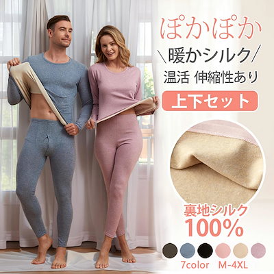 保温インナー メンズ レディースセット新作 蚕糸デロン素材採用裏起毛 防寒機能付き ヒートテック極暖 あったかインナーシャツ薄手 厚手選べる タイトフィット秋冬ルームウェア パジャマ対応