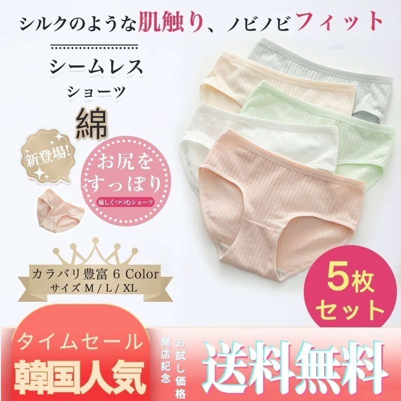 5枚セット 綿 シームレス ショーツ レディース サニタリーショーツ 100%綿 かわいい浅履き くすみカラー インナー オールシーズン サラサラ ノーマル 無地 通気性