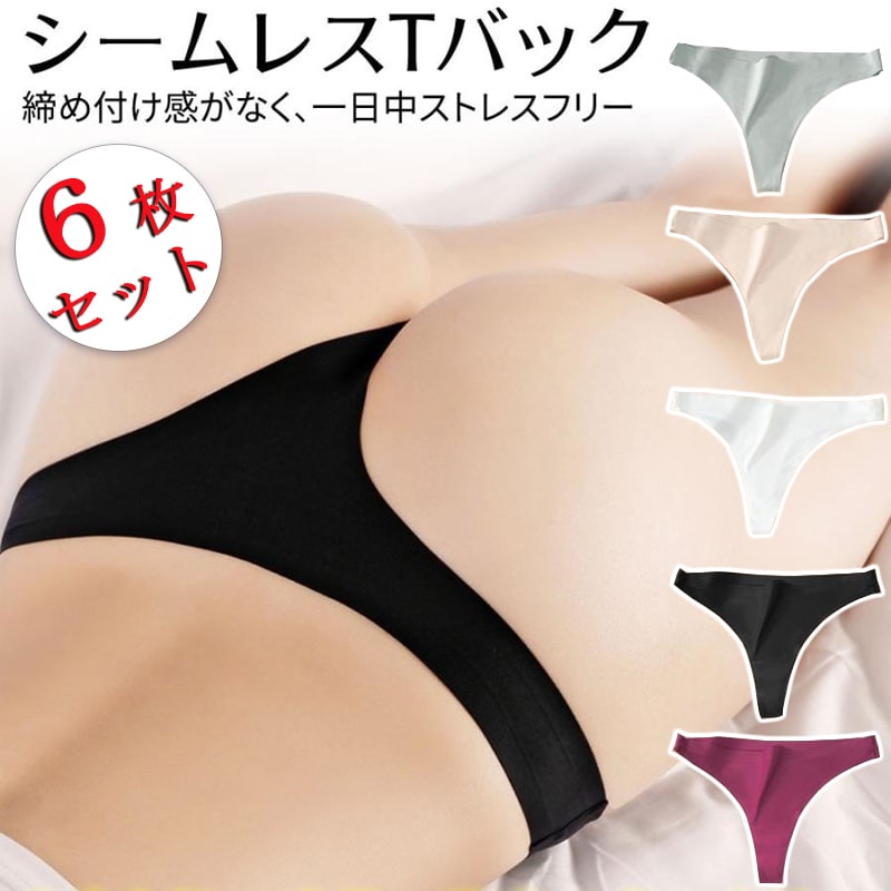 シームレス Tバック ショーツ 6枚セット 無縫製 ティーバック レディース インナー ストレッチ パンティー 下着 シンプル スタンダード 下着 伸縮性 通気性