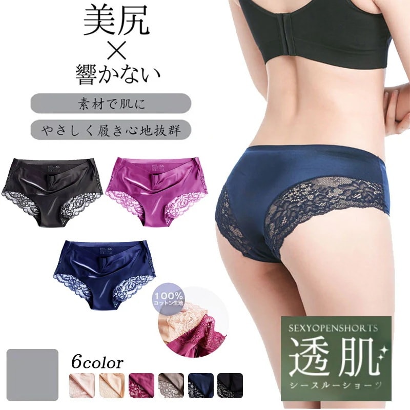 ショーツ レディース シームレス 下着 パンツ 美尻 バックレース よく伸びる 女性用 締め付けない 通気 インナー