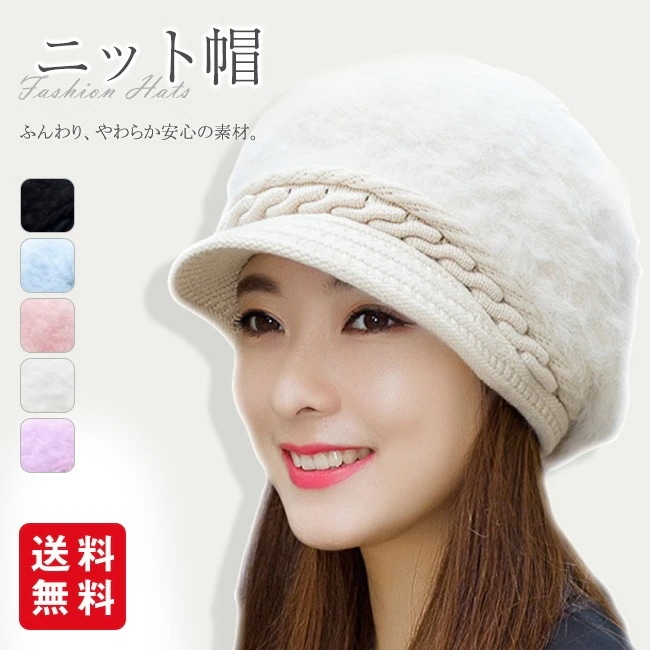 ニットキャスケット レディース ふわふわファー 帽子 可愛い ニット帽 小顔効果 防寒対策 キャップ 秋冬 ニット帽