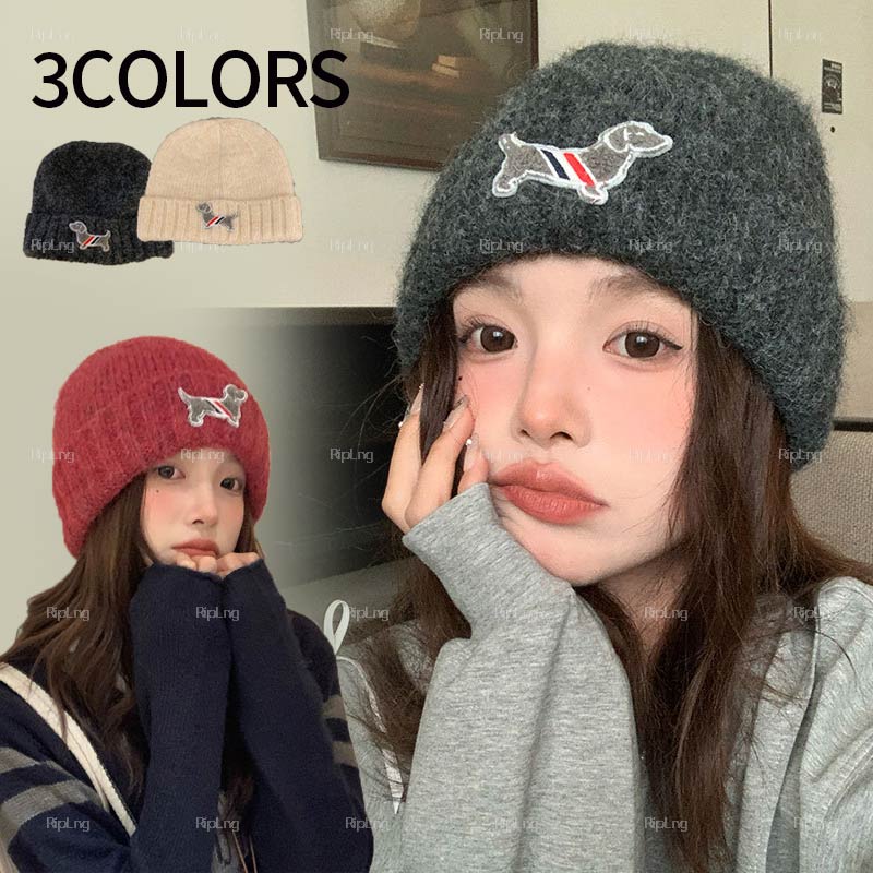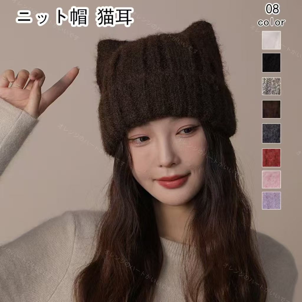 韓国ニット帽韓国猫耳ニットライン帽子女性冬暖かい ニット帽