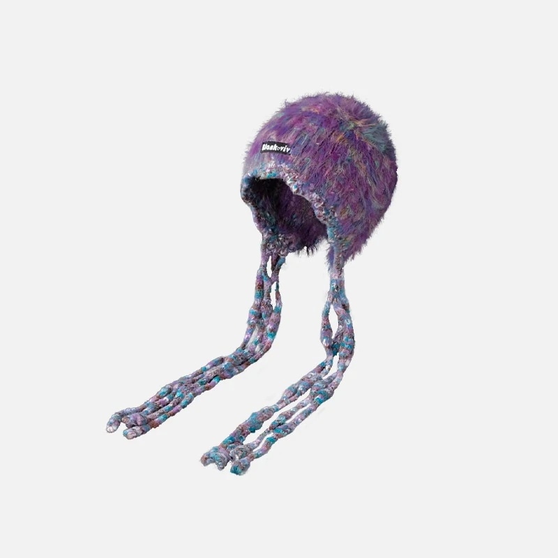 秋と冬の耳保護キャップ韓国新しいミックスカラータッセル手編みぬいぐるみストラップウールキャップ子供と暖かい百 ニット帽