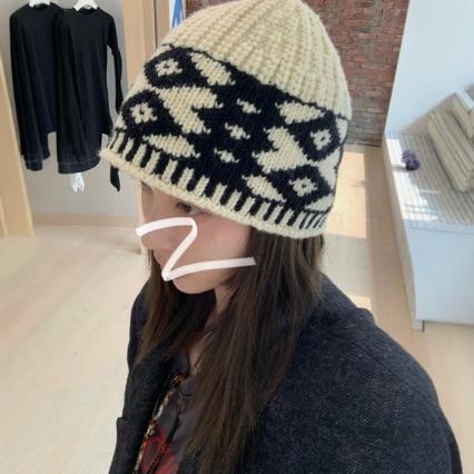新作ウールレトロウールキャップニット帽女性防寒帽子 ニット帽 ニット帽
