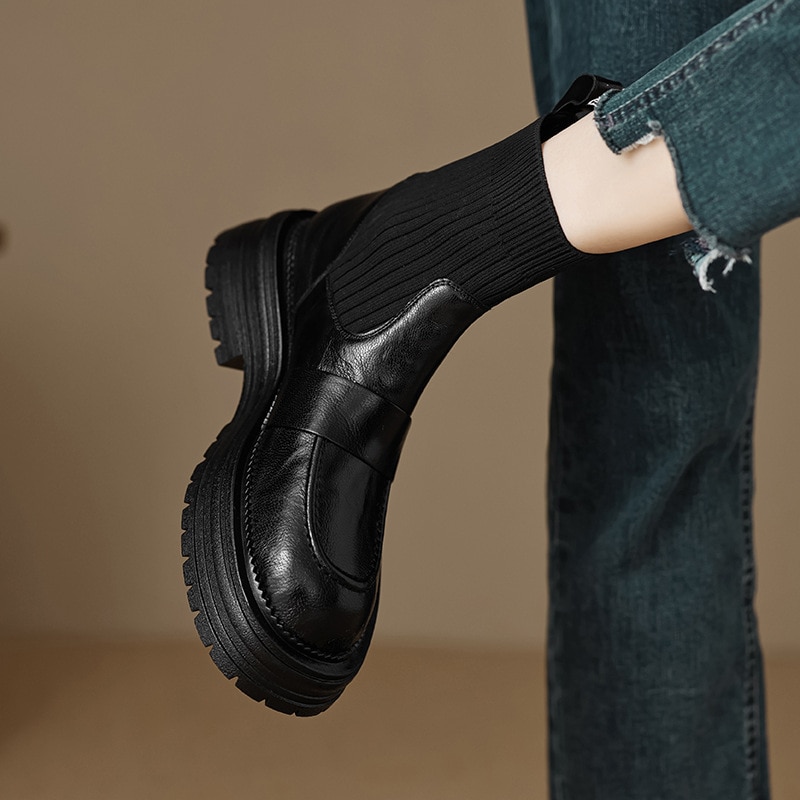 厚底ショートブーツのマーティンブーツの女性英伦風騎士ブーツ 厚底ブーツ