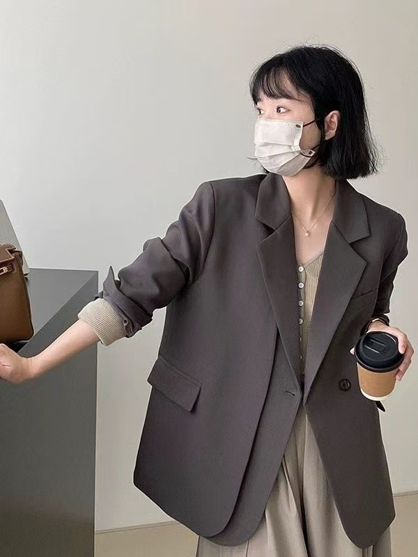 スーツ レディース 春秋 韓国 ゆったり ブラウン カジュアル スーツジャケッ ト 春トレンチコート テーラードジャケット