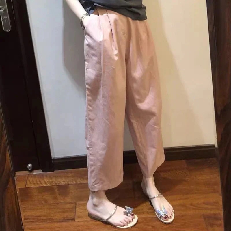 かっこいい スラックスパンツ2024新型ゆったり 夏の薄手 ピンク カジュアル ハイウエストワイドパンツ サルエルパンツ