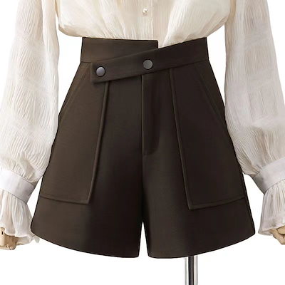 ショートパンツ 防寒パンツ Aライン ショート丈ストレートハイウエストショートパンツゆったり 脚長美脚細見え韓国ファッションパンツ レディース