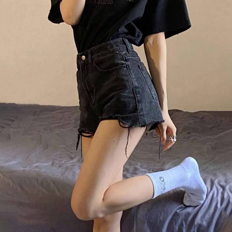 脚見せショートパンツ お得なショーツ デニムパンツ レディース 夏の細いハイウエスト生エッジショートパンツ 黒の大きいサイズの細いパンツ ショート ハーフパンツ