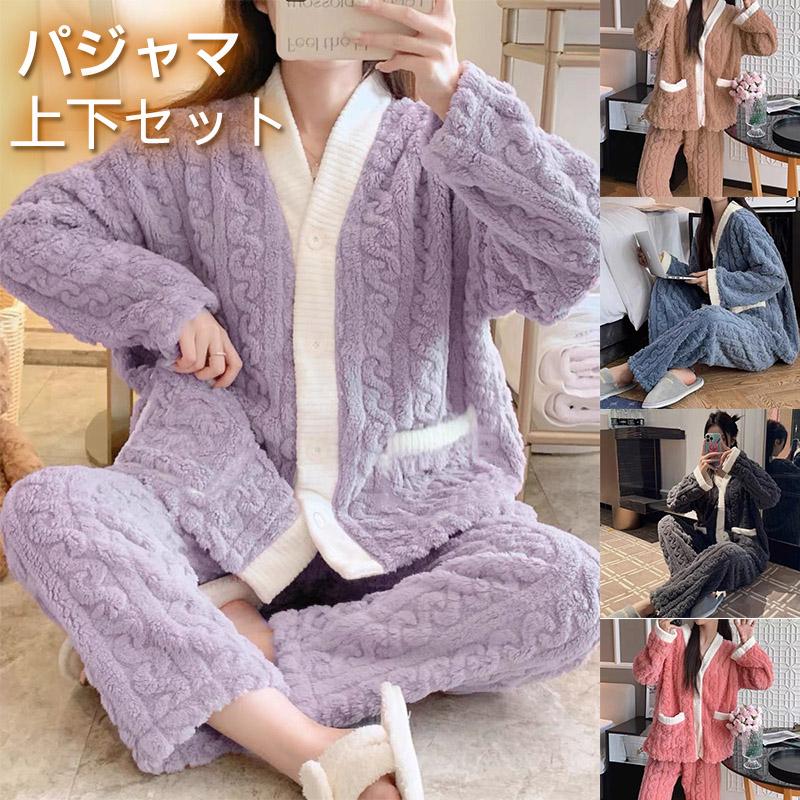 トップス ルームウェア 前開き ゆったり 防寒 長袖 冬 ボア 部屋着 上下セット もこもこ レディース かわいい パジャマ 寝巻き 暖かい 保温 あったか 厚手