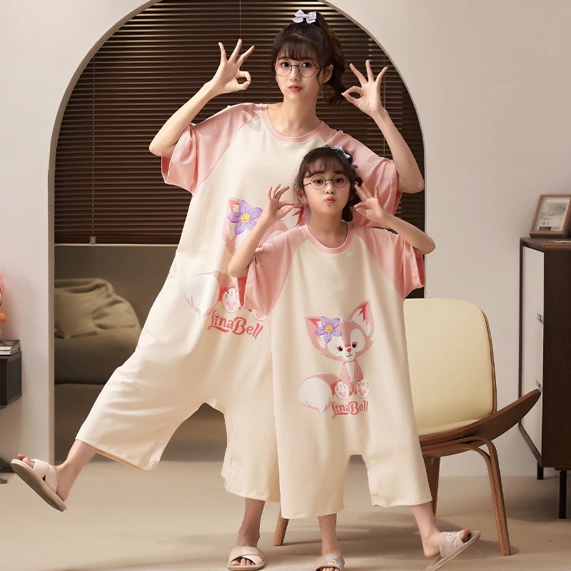 夏の純綿半袖ャマ女の子と子供用漫画大きい母と娘のネグリジェ親子着用ホーム服秋 パジャマ