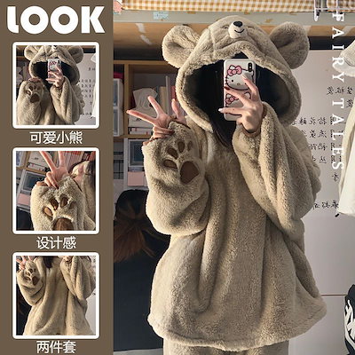 着ぐるみパジャマ ins甘くてかわいいヒグマのパジャマ女性保温冬の新型加絨加厚サンゴ絨毯の部屋着 パジャマ