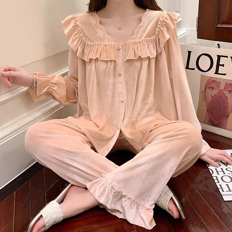 3colors 秋冬 長袖 日系 可愛い カジュアル ルームウェア 気質 レディース ルームウェアゴールドベルベット保温パジャマ パジャマ