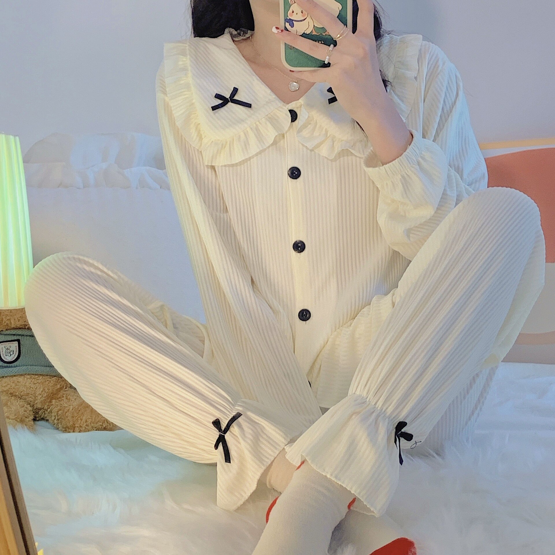 秋冬 長袖 パジャマ 日系 可愛い カジュアル ルームウェア 気質 レディース ルームウェア パジャマ