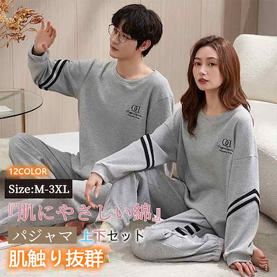 パジャマ レディース メンズ ルームウェア 長袖 上下セット 無地 綿 かわいい 薄手 快適 柔ら パジャマ