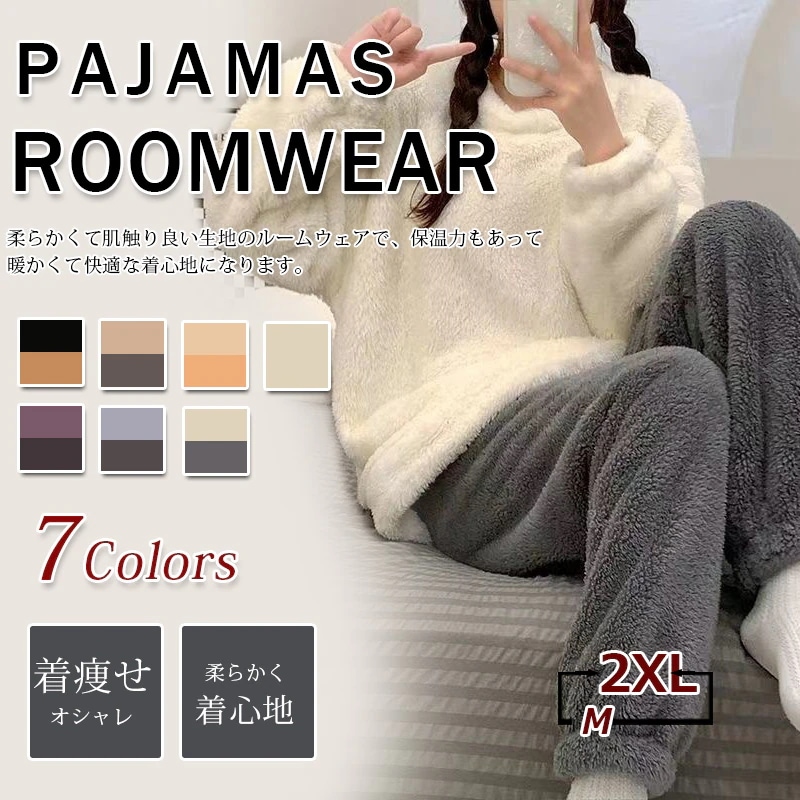 秋 冬 新作 コーラルフリース 裏起毛 厚手 パジャマ 快適性 ルームウェア パジャマ