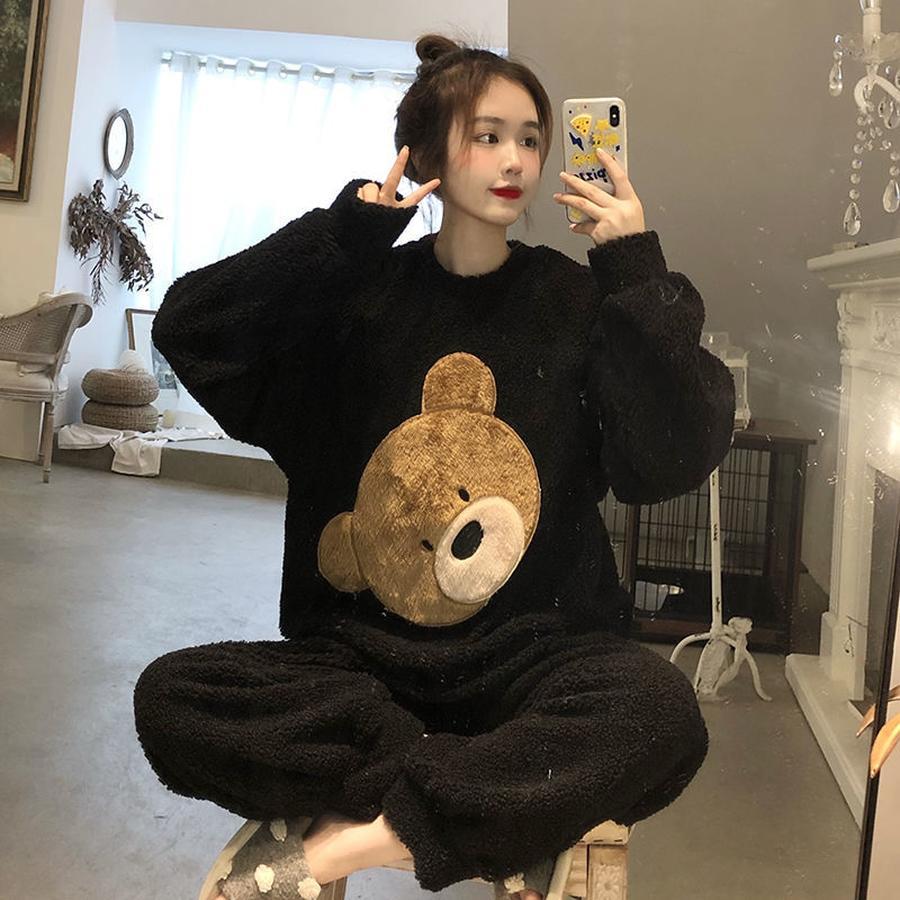韓国ファッション 部屋着 秋冬 可愛い 裹起毛 もこもこフランネル ルームウェア セットアップ ゆったり快適 パジャマ レディース 冬暖かい 大きいサイズパジャマ 下着